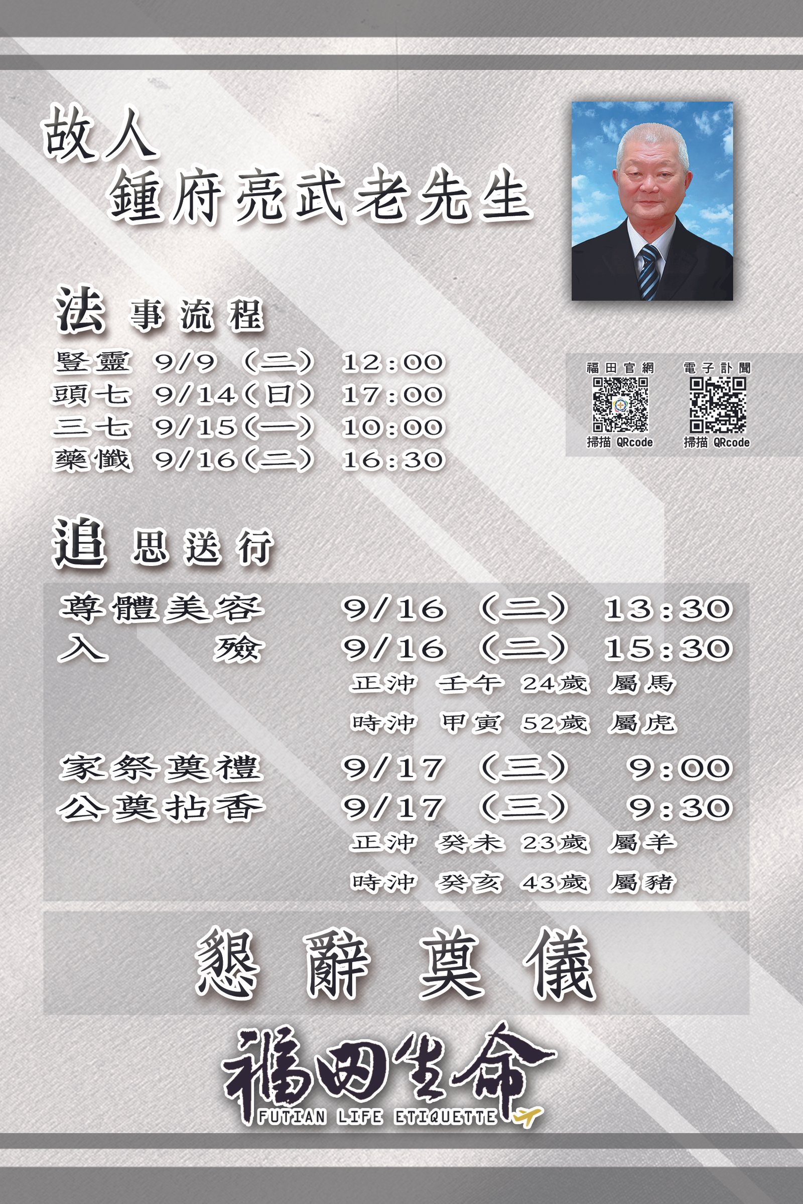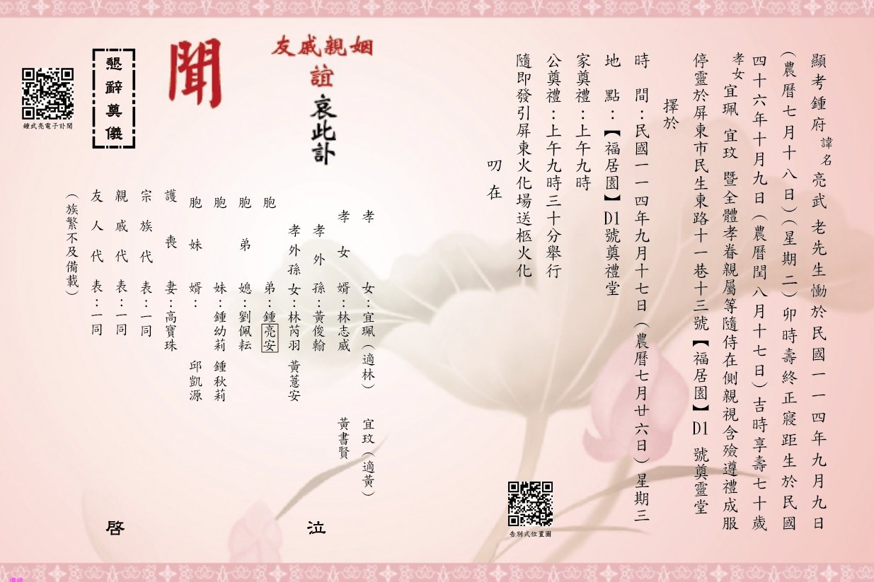 誠摯敬邀您參與追思奠禮