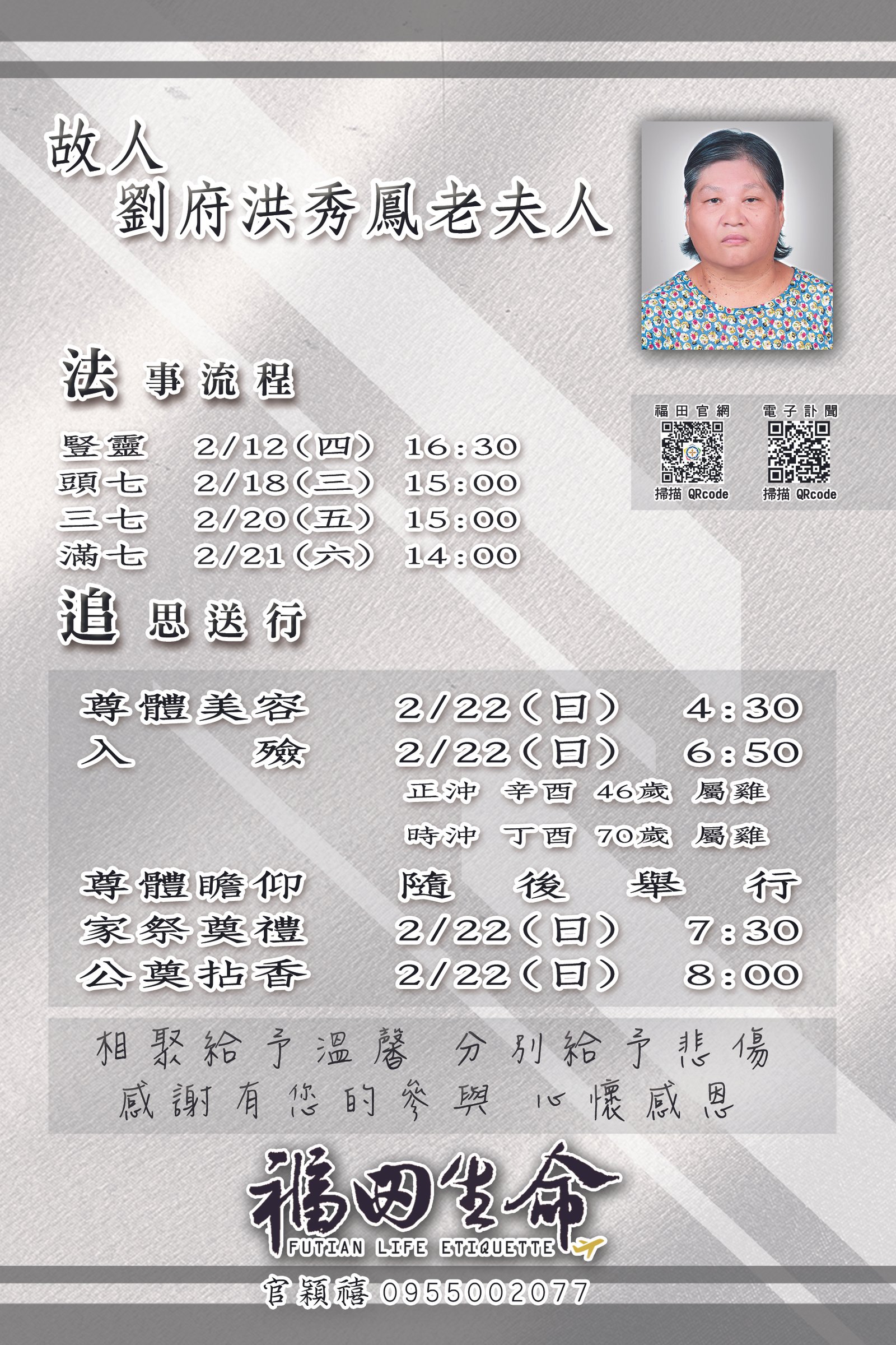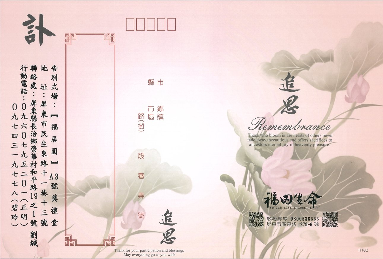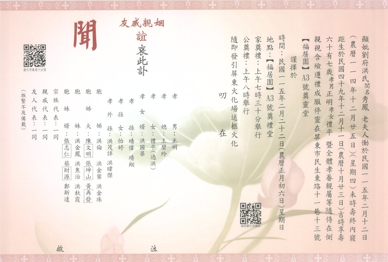 誠摯敬邀您參與追思奠禮