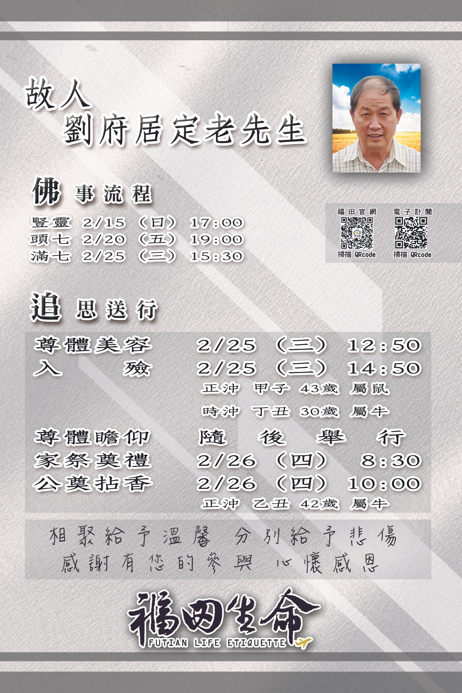 誠摯敬邀您參與追思奠禮