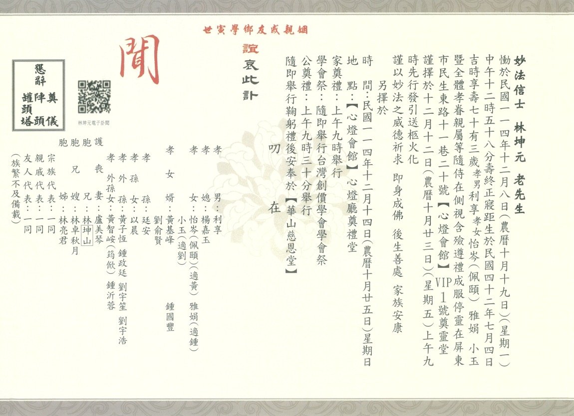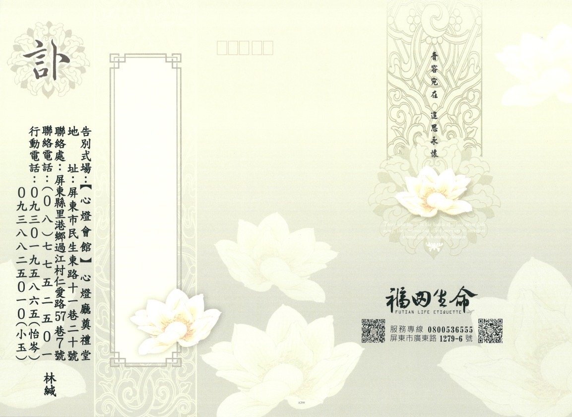 停靈於:屏東福心燈生命園區VIP1奠禮堂