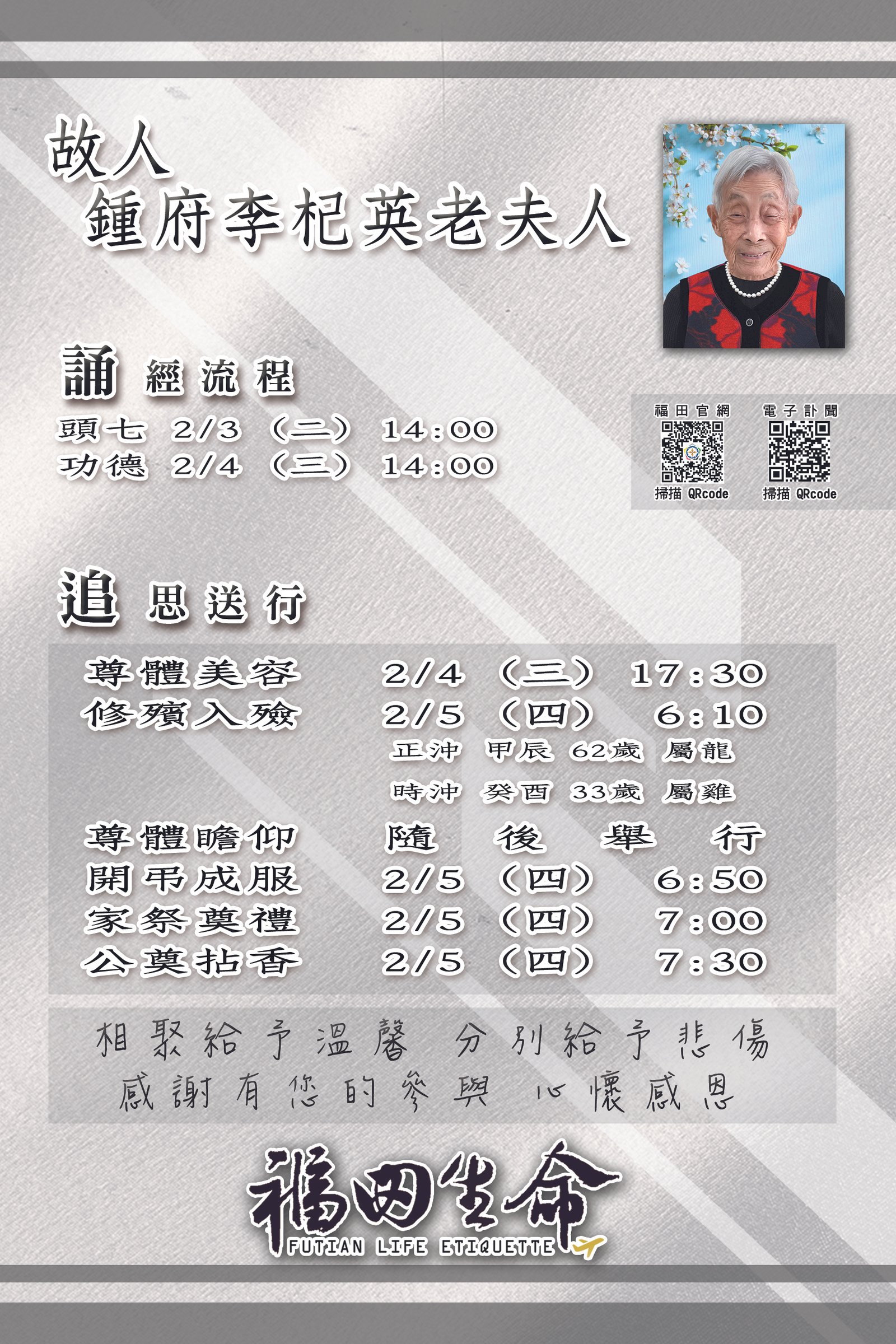 誠摯敬邀您參與追思奠禮